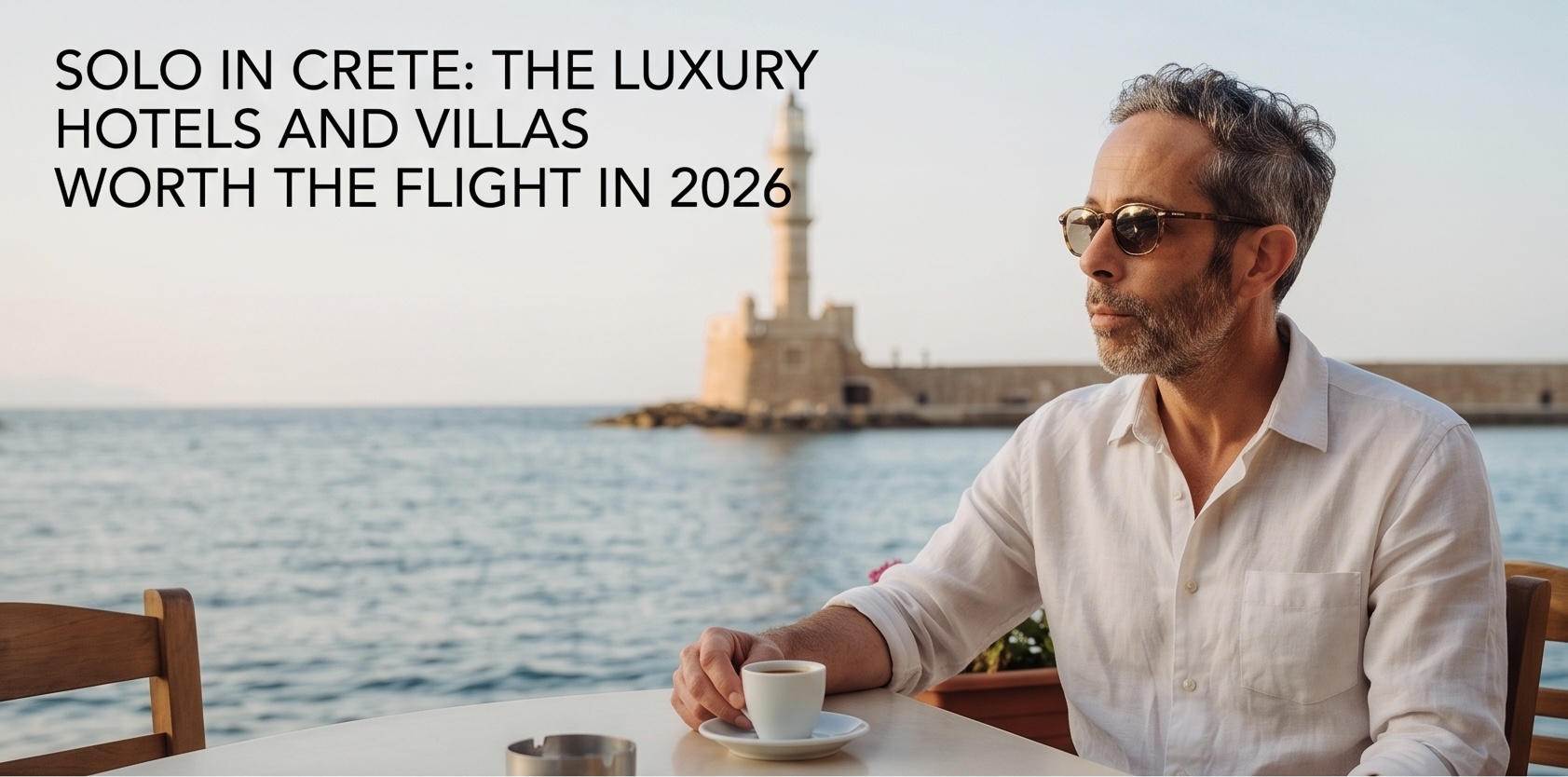 Solo luxury Crete in 2026 is shaping up as the smartest Mediterranean trip on the calendar. Crete is the largest of the Greek islands and, for solo travellers over 40, the most quietly intelligent choice in the Med right now. It is big enough that you can disappear into it. It has the food, the archaeology, the gorges, the pink-sand beaches, the wine, and a coastline that runs from boutique-Venetian in the west to legacy-billionaire in the east and the early-booking offers from the better hotels are unusually competitive.