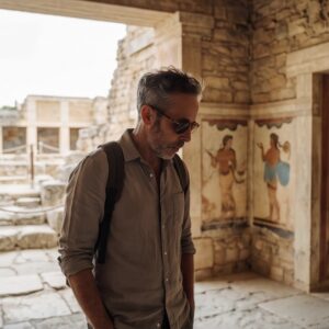 Rethymno and central Crete — the cultural heart. Knossos, the Heraklion Archaeological Museum, the Psiloritis mountains, vineyards, monasteries. Less polished than Chania, more substance per square mile. Fly into Heraklion (HER).
